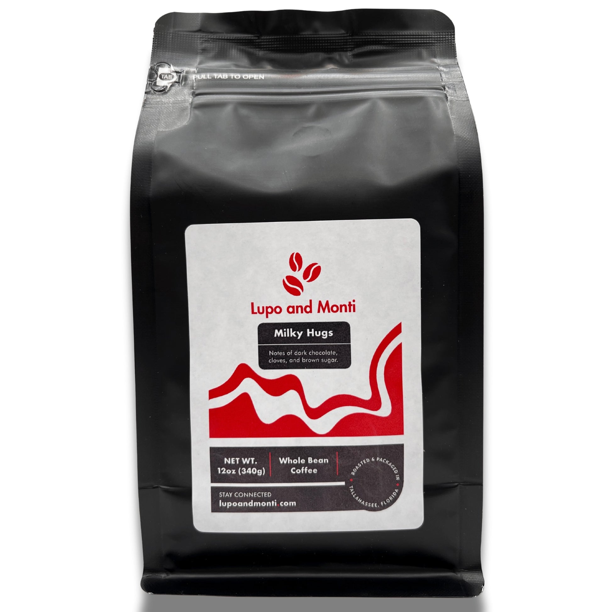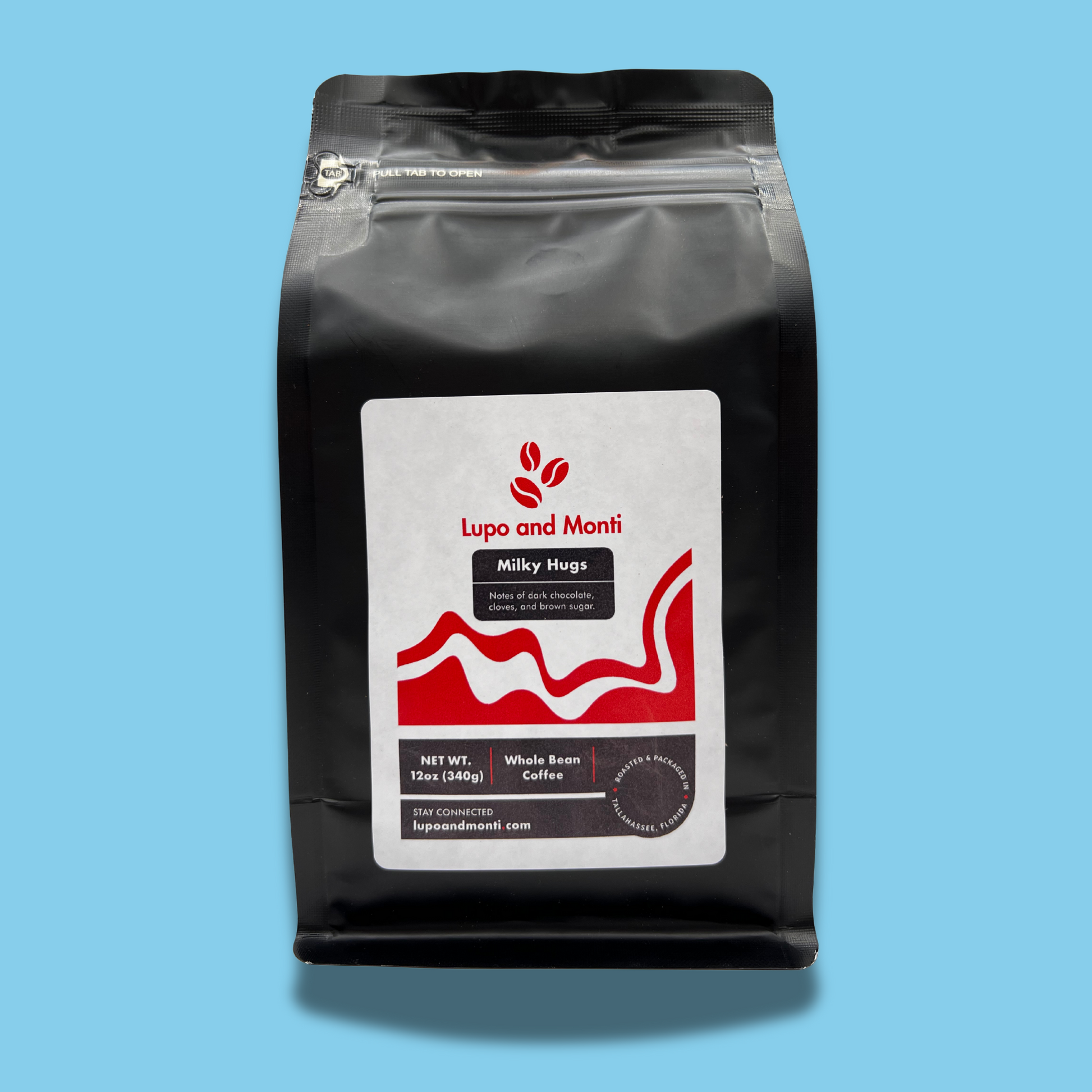 Our Milky Hugs blend will complement the milky texture and flavors of cappuccinos, lattes, and macchiatos. You'll experience notes of Dark Chocolate, Cloves, and Brown Sugar. Milky Hugs is a true delight for those who enjoy their espresso in a milky beverage.